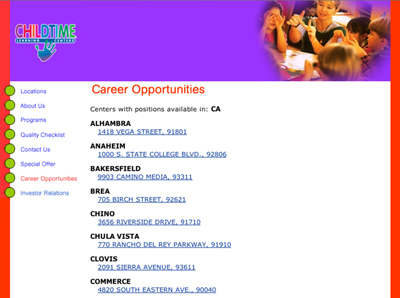 Created http://www.childtime.com Carreer Opportunities web application