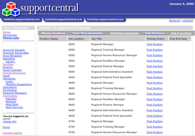 Created http://www.supportcentral.com Carreer Opportunities Administration web application