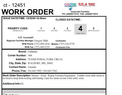 Created http://www.supportcentral.com Facilites Ticket Work Order